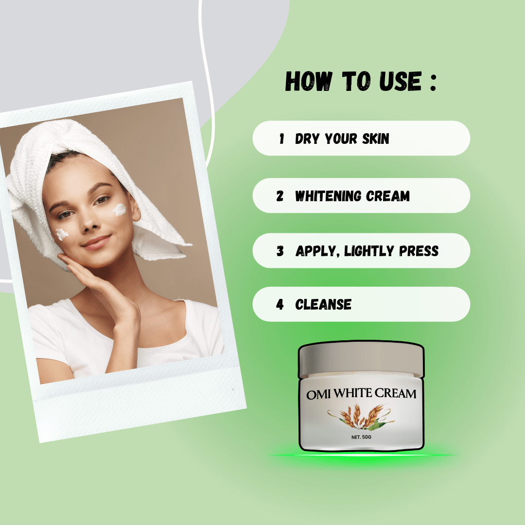 OMI White Cream combines key ingredients to deliver effective skincare benefits. It contains arbutin for brightening, niacinamide for improving skin tone, collagen for firmness, hyaluronic acid for hydration, pearl powder for radiance, aloe vera extract for soothing, and green tea extract for protection. Experience the power of these ingredients for a healthier, more radiant complexion.
